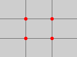 Эй, что происходит? Куда смотрит девушка? Вынеся направление взгляда за границу экрана, мы создали у зрителя напряжение, ожидание. В следующем кадре мы оправдываем ожидание зрителя, показывая, что девушка зажигала стоящий на земле светильник. Нарушая правила комфортного восприятия человеческой психики, профессионалы создают так называемый "акцент", то есть место в повествовании, когда возможно изменение темпа и манеры изложения; наращивают напряженность перед внезапным событием. Если ваши видеозаписи не предусматривают шокирование зрителя, резкую смену ритмов и настроений - лучше не нарушайте законы, вот увидите, они будут нарушаться сами, без вашего участия :) Правило "золотого сечения" Еще одно правило, прямо вытекающего из "Учения о центре экрана". А где располагаться объектам, если не в центре экрана? Ответ приходит из глубины веков, когда архитекторы и живописцы открыли "Золотое Сечение". Посмотрите на рисунок: Каждая линия, проходящая по экрану, делит его на две части. Причем одна из частей по площади больше другой ровно в два раза. Две вертикальные и две горизонтальные линии, четыре точки пересечения. Хотите, чтобы ваши кадры не вызывали у зрителя отторжения на уровне психологии (неважно, что там в них изображено)? Старайтесь располагать главные объекты по этим линиям и точкам, не забывая о взглядах и движениях. 1/3 и 2/3 использованы в качестве легко запоминаемых чисел, весьма близких к "золотому сечению" в варианте гармонической пропорции; более точное определение (не имеющее отношения к данной статье) нетрудно отыскать самостоятельно.
