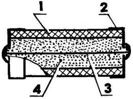Плавкая вставка в сборе: 1 - трубка керамическая, 2 - колпачок металлический контактный, 3 - элемент плавкий, 4 - песок кварцевый.