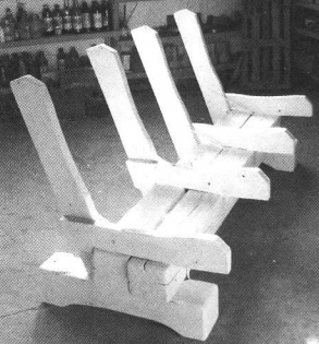 К качеству исходных материалов особых требований нет: хватило б длины (кстати, один из брусьев балки - составной, а другой - клееный по продольной трещине), да было бы только поменьше смолевых сучков на лицевых поверхностях планок обшивки сиденья и спинки. Кстати, было бы неплохо изготовить планки из лиственных пород.