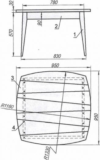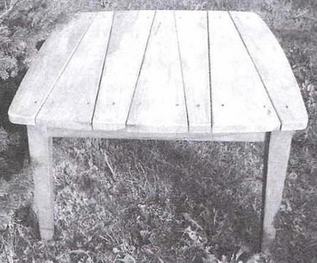 Следующий ход - закрепление деталей столешницы на каркасе при помощи "еврошурупов" (винтовых стяжек с потайными головками) со сверлением отверстий под них прямо по месту. При этом как-то само напрашивалось решение их крепления - двумя шурупами с широкого края и одним - с узкого заподлицо с ровной поверхностью столешницы, которая уже светилась свежеоструганным деревом. По нему-то была легко размечена овальная форма столешницы и выпилена электролобзиком по начерченной линии. После нумерации (с тыльной стороны) доски детали столешницы откручиваются, шлифуются и покрываются лаком ХВ. Так же лакируется старый каркас столика (царги с обрезанными ножками). Просохшие клиновидные планки с помощью шуруповерта вновь притягиваются к каркасу. Готовый столик тут же из мастерской перекочевал в беседку на руках мастера, в которую еще раньше перебрался садовый диван. А вечером семья уже ужинала за столиком, сидя на диване в беседке. Автор: А.Матвейчук