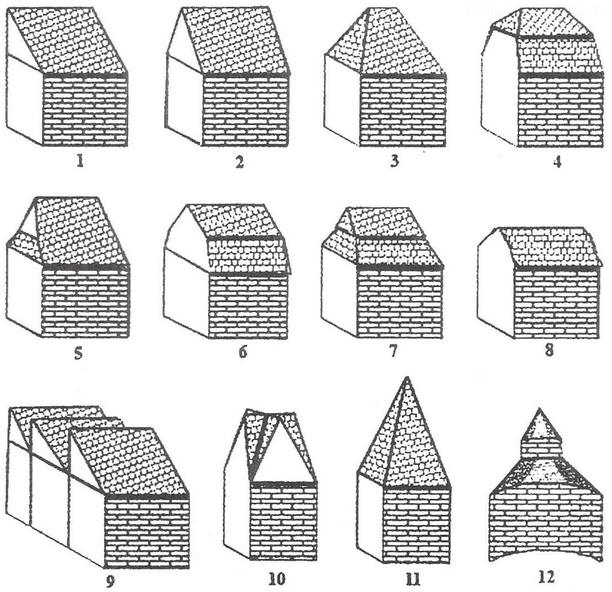 Крыша вашего дома. Советы домашнему мастеру Справочник / Строителю, домашнему мастеру Когда древний человек покинул пещеры и перебрался в долины и леса, то его жилищем стали примитивные постройки с крышей в виде полога, сооруженные из ветвей и шкур животных. Прошли века, люди совершенствовали не только постройки, но и кровлю. Скандинавская пословица гласит: "Крыша - пятый фасад". Современные технологии и богатый выбор строительных материалов позволяют сделать этот элемент жилого дома не только надежным, но и красивым и легким. Фантазия человеческая без устали создает все новые конструкции крыш. Каких только не бывает на свете! Например, в Германии возводят крыши, которые в три раза выше стен самого дома. А взгляните на китайские или японские пагоды: они озорно вздернули к небу углы своих кровель. На Западе очень популярны травяные покрытия строений: и экологично, и в зной прохладно. Многие умельцы используют для своих нужд полезную площадь крыши, размещая там солнечные батареи или водяную систему с солнечным подогревом. На рис.1 представлены наиболее типичные формы крыш. Несмотря на большое разнообразие их конструкций, все же несущая стропильная основа крыши едина. О ней мы и поговорим. В России применяют свод правил по проектированию и строительству СП 31-105-2002, его восьмой раздел посвящен крыше.