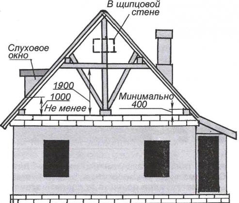 Кроме того, для получения более подробных сведений можно обратиться к строительным нормам и правилам (СНиП II-26-76 в ч. 2 гл.26), где речь идет о кровлях. Итак, что же является опорой для различных видов покрытий? Все детали крыши имеют специальные названия. Чтобы в дальнейшем не запутаться в терминах, приведем небольшой перечень (рис.3-5). Стропила Несущие конструкции скатной кровли; состоят из наклонных стропильных ног, вертикальных стоек и наклонных подкосов. При необходимости понизу их связывают горизонтальными подстропильными балками. В целом это конструкция, поддерживающая скаты крыши. Стропильная ферма Балочная конструкция из системы параллельных наклонных балок (стропильные ноги), опирающихся нижним концом на мауэрлат (см. рис.6), а верхним - на коньковый брус. Кобылка Пришитая гвоздями к стропильной ноге короткая доска, на которую опирается карнизный свес кровли. Конек Верхнее горизонтальное ребро крыши, образованное пересечением двух кровельных скатов. Консоль Часть балки или иной конструкции, выступающая за плоскость стены. Мауэрлат (подстропильный брус) Брус, служащий опорой наклонных деревянных стропил и предназначенный для распределения нагрузки, создаваемой крышей сооружения. Располагается на верхнем внутреннем обрезе каменных стен. Обрешетка Бруски, доски, жерди, планки, располагаемые поперек стропил для настила по ним кровельного материала. Пилястра Плоский вертикальный выступ в стене, обработанный в форме колонны (ордера) для опоры ската крыши. Подбалочник (схватка) Расположенные между несущей балкой и опорными стойками отрезки бруса. Предназначены для распределения вертикальной нагрузки. Подкос (раскос) Строительный элемент, соединяющий два узла каркаса, фермы, стропил. Расположен по диагонали замкнутого контура, обеспечивает жесткость конструкции. Ригель Горизонтальный элемент строительной конструкции (балка, прогон). В рамах соединяет стойки, в каркасах - опоры, в крышах - стропила. В общем объеме строительных работ по возведению жилого дома стоимость крыши составляет около 18%; ее качества обеспечивают надежность защиты здания от осадков, ветра, солнечной радиации. Обратимся к наиболее распространенной в жилищном строительстве скатной крыше. Уклон скатов зависит от многих факторов: во-первых, от материала, во-вторых, от климатической зоны, в которой находится дом. В северных районах уклон следует делать как можно круче, чтобы массы снега не собирались на крыше и не создавали опасности перегрузки несущих конструкций. А там, где часты сильные ветры, крыша, наоборот, должна быть низкой, чтобы она не страдала от разрушительных порывов. В южных районах кровлю окрашивают в светлые тона, отражающие жаркие солнечные лучи. Как правило, крыша индивидуального дома имеет холодный чердак, а утепление устраивают по чердачному перекрытию. В щипцовой (передней) стене чердака и в кровле делают слуховые и вентиляционные окна (рис.2). Это позволяет избежать перегрева помещений верхнего жилого этажа летом и удалять влажный воздух, проникающий на чердак из отапливаемых помещений зимой. Существуют нормативы высоты чердака для обеспечения его проветривания, освещения и прохода. Крыша опирается на мауэрлат, который должен быть смонтирован над чердачным перекрытием не ниже 400 мм. От ригеля или схватки до пола чердака расст