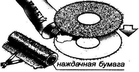 Âûðåæüòå äâà êðóæî÷êà è ñêëåéòå èõ íå àáðàçèâíûìè ñòîðîíàìè. Îñòàåòñÿ ïðîäåëàòü îòâåðñòèå - è ãîòîâà øàéáà.