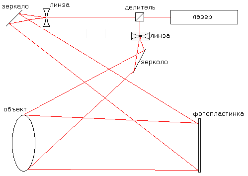 Другой принципиально новый способ голографирования удалось создать российскому физику Юрию Николаевичу Денисюку. Ученый использовал интерференцию встречных пучков света. Попадая на пластинку с разных сторон, пучки складываются в слое фотоэмульсии, формируя объемную голограмму.