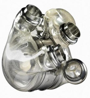 Во время сложнейших операций, проводимых на сердце, легких или почках, неоценимую помощь медикам оказывают "Аппарат искусственного кровообращения", "Искусственное легкое", "Искусственное сердце", "Искусственная почка", которые принимают на себя функции оперируемых органов, позволяют на время приостановить их работу. "Искусственное легкое" представляет собой пульсирующий насос, который подает воздух порциями с частотой 40-50 раз в минуту. Обычный поршень для этого не подходит: в ток воздуха могут попасть частички материала его трущихся частей или уплотнителя. Здесь и в других подобных устройствах используют мехи из гофрированного металла или пластика - сильфоны. Очищенный и доведенный до требуемой температуры воздух подается непосредственно в бронхи. "Аппарат искусственного кровообращения" устроен аналогично. Его шланги подключаются к кровеносным сосудам хирургическим путем. Первая попытка замещения функции сердца механическим аналогом была сделана еще в 1812 году. Однако до сих пор среди множества изготовленных аппаратов нет полностью удовлетворяющего врачей. Отечественные ученые и конструкторы разработали ряд моделей под общим названием "Поиск". Это четырехкамерный протез сердца с желудочками мешотчатого типа, предназначенный для имплантации в ортотопическую позицию. В модели различают левую и правую половины, каждая из которых состоит из искусственного желудочка и искусственного предсердия. Составными элементами искусственного желудочка являются: корпус, рабочая камера, входной и выходной клапаны. Корпус желудочка изготавливается из силиконовой резины методом наслоения. Матрица погружается в жидкий полимер, вынимается и высушивается - и так раз за разом, пока на поверхности матрицы не создается многослойная плоть сердца. Рабочая камера по форме аналогична корпусу. Ее изготавливали из латексной резины, а потом из силикона. Конструктивной особенностью рабочей камеры является различная толщина стенок, в которых различают активные и пассивные участки. Конструкция рассчитана таким образом, что даже при полном напряжении активных участков противоположные стенки рабочей поверхности камеры не соприкасаются между собой, чем устраняется травма форменных элементов крови. Российский конструктор Александр Дробышев, несмотря на все трудности, продолжает создавать новые современные конструкции "Поиска", которые будут значительно дешевле зарубежных образцов. Одна из лучших на сегодня зарубежных систем "Искусственное сердце" "Новакор" стоит 400 тысяч долларов. С ней можно целый год дома ждать операции. В кейсе-чемоданчике "Новакора" находятся два пластмассовых желудочка. На отдельной тележке - наружный сервис: компьютер управления, монитор контроля, который остается в клинике на глазах у врачей. Дома с больным - блок питания, аккумуляторные батареи, которые сменяются и подзаряжаются от сети. Задача больного - следить за зеленым индикатором ламп, показывающих заряд аккумуляторов. Аппараты "Искусственная почка" работают уже довольно давно и успешно применяются медиками. Еще в 1837 году, изучая процессы движения растворов через полупроницаемые мембраны, Т. Грехен впервые применил и ввел в употребление термин "диализ" (от греческого dialisis - отделение). Но лишь в 1912 году на основе этого метода в США был сконструирован аппарат,