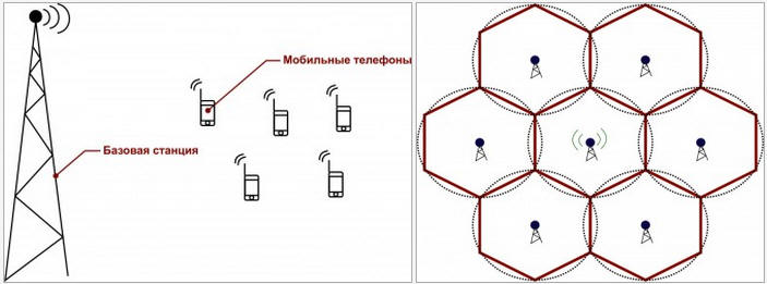 Справочник / История техники, технологии, предметов вокруг нас Сотовая связь, сеть подвижной связи - один из видов мобильной радиосвязи, в основе которого лежит сотовая сеть. Ключевая особенность заключается в том, что общая зона покрытия делится на ячейки (соты), определяющиеся зонами покрытия отдельных базовых станций (БС). Соты частично перекрываются и вместе образуют сеть. На идеальной (ровной и без застройки) поверхности зона покрытия одной БС представляет собой круг, поэтому составленная из них сеть имеет вид шестиугольных ячеек (сот). Сеть составляют разнесенные в пространстве приемопередатчики, работающие в одном и том же частотном диапазоне, и коммутирующее оборудование, позволяющее определять текущее местоположение подвижных абонентов и обеспечивать непрерывность связи при перемещении абонента из зоны действия одного приемопередатчика в зону действия другого. Мобильная сеть включает большое число базовых станций, зоны обслуживания которых частично перекрываются, ввиду ограниченности их передающей мощности. Таким образом, зона, в которой теоритически гарантирована связь мобильного телефона с рассматриваемой базовой станцией, в плане представляет собой многогранник - ячейку, напоминающую пчелиную соту. Именно, отсюда этот вид мобильной радиосвязи получил свое название - сотовый.