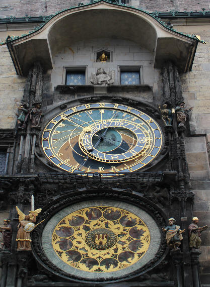 Так, в Пражских башенных часах (сооруженных в 1402 году) перед боем раскрывались два оконца над циферблатом и из них выходило 12 апостолов. Страшная фигура Смерти, стоявшая на правой стороне циферблата, при каждом бое часов поворачивала косу, а затем песочные часы, напоминая о конце жизни. Человек, стоявший рядом, кивал головой, как бы подчеркивая роковую неизбежность. На другой стороне циферблата находились еще две фигуры. Одна изображала человека с кошельком в руках; каждый час он звенел лежавшими там монетами, показывая, что время - деньги. Другая фигура изображала путника, мерно ударявшего посохом в землю. Она показывала, как с течением времени движется по жизненной дороге человек, или суетность жизни. После боя часов появлялся петух и три раза кричал. Последним в оконце появлялся Христос и благословлял всех стоявших внизу зрителей. Создание таких автоматов требовало особых программных устройств. Их приводил в движение большой диск, управляемый часовым механизмом. Все подвижные части фигур имели свои рычаги. Во время вращения круга они то поднимались, то опускались, когда рычаги попадали в особые вырезы и зубцы вращающегося диска. Помимо этого башенные часы имели отдельный механизм для боя (многие часы по-разному отбивали четверть часа, час, полдень и полночь), приводимый в движение собственной гирей, и четыре циферблата (на каждой стороне башни). Ко второй половине XV века относятся самые первые упоминания об изготовлении часов с пружинным двигателем, который открыл путь к созданию миниатюрных часов. Источником движущей энергии в пружинных часах служила заведенная и стремящаяся развернуться пружина, которая представляла собой эластичную, тщательным образом закаленную стальную ленту, свернутую вокруг вала внутри барабана. Внешний конец пружины закреплялся за крючок в стенке барабана, внутренний - соединялся с валом барабана. Стремясь развернуться, пружина приводила во вращение барабан и связанное с ним зубчатое колесо, которое в свою очередь передавало это движение системе зубчатых колес до регулятора включительно. Конструируя такие часы, мастера должны были разрешить несколько сложных технических задач. Главная из них касалась работы самого двигателя. Ведь для правильного хода часов пружина должна на протяжении длительного времени воздействовать на колесный механизм с одной и той же силой. Для этого необходимо заставить ее разворачиваться медленно и равномерно. Толчком к созданию пружинных часов послужило изобретение запора, не позволявшего пружине распрямляться сразу. Он представлял собой маленькую щеколду, помещавшуюся в зубья колес и позволявшую пружине раскручиваться только так, что одновременно поворачивался весь ее корпус, а вместе с ним колеса часового механизма.