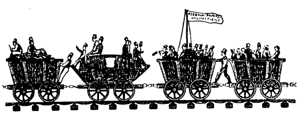 Средняя скорость поезда была 10 км/ч. Впереди локомотива скакал верховой с флагом, прося публику освободить рельсы. На отдельных участках ему приходилось мчаться во весь опор, потому что поезд разгонялся до 24 км/ч. Всего за этот рейс было перевезено более 600 пассажиров. Вместе с остальным грузом эта публика весила около 90 т.