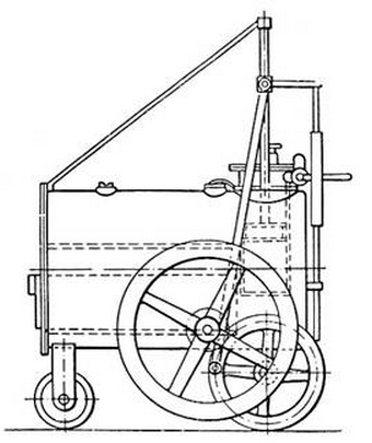 Затем в 1801-1803 годах он построил несколько паровых повозок, которые весьма успешно бегали по скверной дороге из Кемборна в Плимут. По существу, это были первые в истории автомобили. Но до изобретения пневматических шин ездить на таких машинах могли только энтузиасты. Хороших дорог было мало, и никакие рессоры не спасали машину и ее водителя от жестокой тряски. К тому же все эти сооружения были очень громоздкими и тяжеловесными для того, чтобы передвигаться по грунтовым дорогам.