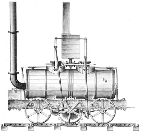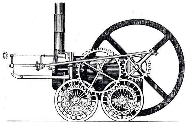 Тривайтик не был уверен, что трения между колесами и рельсами будет достаточно для поступательного движения паровоза. Поэтому наружная часть колеса, выдававшаяся за рельсы, была утыкана головками гвоздей, которые вдавливались в брусья, уложенные параллельно рельсам. Впрочем, очень скоро Тривайтик убедился, что нужды в этих дополнительных приспособлениях нет - паровоз мог прекрасно передвигаться по гладким рельсам и тащить за собой несколько вагонов. Несмотря на свои хорошие ходовые качества, первый паровоз не вызвал к себе интереса. Дело в том, что Тривайтику приходилось демонстрировать свое детище на Мертир-Тидвилской конной железной дороге. Тяжелый паровоз постоянно ломал чугунные рельсы. Было очевидно, что для него придется строить специальные пути. Однако хозяева рудников, которых Тривайтик хотел заинтересовать паровозом, не хотели вкладывать деньги в строительство новой дороги и отказались финансировать изобретателя. В последующие годы Тривайтик сконструировал и построил еще несколько паровозов. Паровоз 1808 года был дальнейшим шагом вперед. Тривайтик убрал громоздкую зубчатую передачу. Движение от вертикального цилиндра передавалось посредством простых шатунов с кривошипами на заднюю ось. Часть отработанного пара шла на подогрев воды в котле, часть - выпускалась через суженное отверстие в дымовую трубу для усиления тяги в топке. Этот усовершенствованный паровоз порожняком развивал скорость 30 км/ч. Однако и такая замечательная машина никого не заинтересовала. В 1811 году, окончательно разорившись, Тривайтик должен был прекратить свои опыты. Беда его заключалась в том, что он явился со своим изобретением слишком рано. Не только железо, но и чугун еще были слишком дороги. Поэтому строительство железных дорог казалось нерентабельным. Высокоточных металлорежущих станков также было очень мало. Все детали паровоза приходилось делать вручную, их себестоимость была высокой. Кроме того, шла война с Наполеоном, Англия была стеснена континентальной блокадой, и все проекты, требовавшие больших капиталовложений, не могли быть реализованы. Но, разумеется, никакие трудности не могли остановить техническую мысль. Появились новые изобретатели, взявшиеся за создание паровоза. Долгое время среди механиков было распространено убеждение, что гладкое колесо не может катиться по гладкому железному рельсу. Стараясь избежать этой мнимой опасности, некоторые изобретатели пошли по ложному пути. В 1812 году Бленкистон, один из владельцев Мидлтонских угольных копей в Йоркшире, проложил небольшую железную дорогу длиной 6 км между Мидлтоном и Лидсом специально для паровоза. В том же году механик Муррей построил по проекту Бленкистона паровоз, обладавший достаточно хорошими техническими показателями. Он передвигался по обычным рельсам и имел колеса с гладкими ободьями. Но движение осуществлялось при помощи зубчатого колеса, катившегося по зубчатой рейке, положенной рядом с гладкими рельсами. Машина имела два паровых цилиндра. Кривошипы двигателей были смещены друг относительно друга на 90 градусов. Когда один из них оказывался в мертвой точке, другой в это время действовал с наибольшей силой.