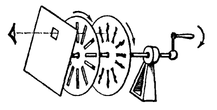 Получается так, что при быстром движении какого-либо объекта наш глаз не замечает всех промежуточных положений - на сетчатке успевает запечатлеться всего около 14 моментальных изображений в секунду, и эти изображения сливаются между собой в движущуюся картину. В определенном смысле, это недостаток нашего глаза, мешающий ему в некоторых случаях верно отражать действительность. Но именно благодаря этому недостатку нашему восприятию стали доступны такие зрелищные искусства, как мультипликация, кинематограф или телевидение. Итак, для того чтобы зафиксировать движение, вовсе нет необходимости отмечать каждое из промежуточных положений движущегося объекта. Достаточно делать каждую секунду всего 12-14 таких запечатлений, а затем прокручивать их с такой же скоростью. Из сказанного видно, что искусство кинематографа фактически состоит из двух частей. Сначала надо запечатлеть движение (для чего необходимо сделать серию моментальных снимков отдельных его фаз), а потом надо суметь спроецировать эти моментальные картины на экран таким образом, чтобы зритель видел перед собой изображение движущегося объекта. И то и другое получилось не сразу. Понадобились усилия многих изобретателей, прежде чем были разрешены все возникшие на этом пути трудности. Первые опыты по проецированию изображений были сделаны еще в древности. В 1646 году немецкий иезуит Афанасиус Кирхер обобщил в своей работе "Великие искусства света и теней" весь накопленный в этой области опыт и описал принцип действия магического фонаря. Волшебный фонарь служил для проецирования через систему линз на белую поверхность (экран) увеличенного изображения какого-нибудь небольшого предмета, чаще всего прозрачной пластинки с нанесенным на ней рисунком. (Каждому хорошо известен принцип действия фильмоскопа - современной разновидности волшебного фонаря.) Магический фонарь можно считать первым прообразом кинематографа, в котором еще нет передачи движения. Это искусство было освоено лишь в первой трети XIX века. В 1833 году профессор практической геометрии австриец Симон Штампфер изобрел занятную игрушку - стробоскоп. Этот прибор представлял собой два диска, вращавшихся на одной общей оси. На одном диске, как на циферблате часов, рисовались фигурки в различных фазах какого-либо повторяющегося процесса, например, отдельные положения шагающего человека. Еще один диск, скрепленный с первым, имел радиальные щели, через которые можно было видеть расположенные за ними картинки. При быстром вращении дисков зритель, глядевший в смотровое окошко, видел последовательно на короткое мгновение каждую из картинок, но это разделенное по времени на отдельные фазы движение воспринималось им в виде слитного образа, совершающего непрерывное движение.