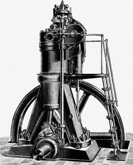 Работа этого гипотетического высокоэффективного двигателя, как доказал Карно, должна складываться из четырех циклов. На первом цикле к рабочему телу подводится тепло Q1 от верхнего уровня T1 при постоянной температуре этого уровня (то есть на этом цикле рабочее тело должно расширяться, сохраняя постоянную температуру, что и достигается за счет нагревания тела). Во время второго цикла происходит расширение рабочего тела, но уже без подвода тепла, до тех пор, пока температура его не опустится до нижнего уровня T2. На третьем цикле рабочее тело сжимается при постоянной температуре T2 (для этого было необходимо постоянно отводить тепло Q2). На четвертом этапе рабочее тело сжималось без отвода тепла до тех пор, пока его температура не поднимется вновь до T1. В случае соблюдения всех этих условий, по расчетам Карно, КПД двигателя определялся формулой 100•(1 - T2/T1) и достигал порядка 70-80%. На протяжении всего XIX века расчеты Карно будоражили творческую мысль изобретателей, которые старались найти ответ на вопрос: каким образом работу реальных тепловых двигателей приблизить к работе по "циклу Карно" и получить максимально возможный КПД. Но все попытки построить такой двигатель оказались безуспешны. Например, КПД паровой машины при мощности в 100 л.с. не превышал 13%, а в маломощных двигателях он был менее 10%. КПД бензиновых и газовых двигателей получался несколько выше, но тоже не превосходил 22-24%. Таково было положение дел, когда в начале 90-х годов за создание "идеального двигателя" взялся молодой немецкий инженер Рудольф Дизель. Еще будучи студентом, он поставил перед собой цель разработать такой мотор, показатели которого были бы близки к "циклу Карно", причем этот двигатель должен был превосходить обычный бензиновый как по мощности, так и по экономичности. После нескольких лет упорной работы проект двигателя был разработан. Суть идеи Дизеля сводилась к следующему. На первом этапе поршень сжимал воздух в цилиндре до высокого давления, за счет чего температура в цилиндре повышается до температуры воспламенения горючего (это соответствовало четвертому циклу Карно - сжатию без отвода тепла). Таким образом, в цилиндре достигалось давление порядка 90 атм и температура около 900 градусов. Горючее подавалось в цилиндр в конце цикла сжатия и вследствие высокой температуры воздуха воспламенялось от одного соприкосновения с ним без всякого внешнего зажигания. Нагнетание горючего осуществлялось равномерно, так что часть обратного движения поршня и расширение газов происходили при постоянной температуре (в соответствии с первым "циклом Карно"). Далее поршень двигался уже под влиянием высокого давления без горения топлива (второй "цикл Карно"). Третьему циклу соответствовали выхлоп и всасывание свежей порции атмосферного воздуха. Затем все циклы повторялись. Благодаря такому устройству Дизель думал повысить КПД своего мотора до неслыханной величины - 73%. Поначалу в качестве горючего он рассчитывал применить пары аммиака, но потом остановил свой выбор на угольном порошке. В 1892 году Дизель получил патент на описанный принцип работы двигателя, а в 1893 году выпустил брошюру "Теория и конструкция рационального теплового двигателя" с описанием мотора и своими математическими выкладками.