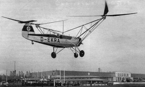 Эта машина имела два рулевых винта и два мотора "Рон" мощностью по 120 л.с. каждый. Она также была впервые снабжена автоматом перекоса. Первые же испытания 1930 года дали блестящий результат. Пилотируемый Черемухиным вертолет уверенно отрывался от земли и легко взмывал на высоту нескольких сот метров, свободно описывал в воздухе восьмерки и другие сложные фигуры. В 1932 году Черемухин поднялся на этом вертолете на высоту 605 м, поставив тем самым абсолютный мировой рекорд. Однако и этот вертолет был еще очень далек от совершенства. Он был неустойчив. Несущий винт был сделан жестким (лопасти не меняли махового движения), что делало его работу неудовлетворительной. В дальнейшем были разработаны и построены другие модели. В 1938 году под руководством Братухина был создан первый советский двухвинтовой вертолет 11-ЭА поперечной схемы. Но в целом в 30-е годы вертолетостроение не получило в СССР государственной поддержки. В это время большую популярность получила теория, согласно которой самолет несравненно совершеннее вертолета и по скорости, и по грузоподъемности, а вертолет - это лишь дорогая игрушка. Только в 1940 году Юрьеву с большим трудом удалось добиться разрешения на создание специального конструкторского бюро, которое он и возглавил. Вскоре загруженный большой преподавательской работой, он передал руководство отделом Ивану Братухину. Через год началась война, и создание совершенного вертолета опять отдвинулось на неопределенный срок. В это время лидером в вертолетостроении была Германия. Талантливый конструктор Фокке создал в 30-е годы несколько совершенных двухвинтовых вертолетов поперечной схемы. В 1937 году на его вертолете FW-61 были установлены мировые рекорды: высоты - 2439 м, скорости - 123 км/ч и дальности - 109 км полета. В 1939 году новый вертолет Фокке достиг высоты 3427 м, а в 1941 году его машина FA-223 была запущен в небольшую серию. Война положила конец его разработкам, но успехи "Фокке-Вульфов" надолго приковали внимание конструкторов к поперечной схеме.