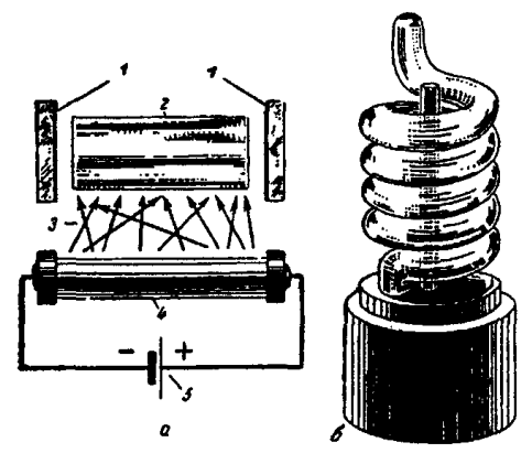 Несмотря на сравнительно простое устройство лазера, процессы, лежащие в основе его работы, чрезвычайно сложны и не поддаются объяснению с точки зрения классических законов физики. Со времен Максвелла и Герца в науке утвердилось представление о том, что электромагнитное и, в частности, световое излучение имеет волновую природу. Эта теория хорошо объясняла большинство наблюдаемых оптических и физических явлений. Но уже в конце XIX века были получены некоторые экспериментальные данные, не подходившие под эту теорию. Например, совершенно непонятным с точки зрения классических представлений о волновой природе света оказывалось явление фотоэффекта. В 1900 году известный немецкий физик Макс Планк, пытаясь объяснить природу этих отклонений, сделал предположение, что испускание электромагнитного излучения и, в частности, света происходит не беспрерывно, а отдельными микроскопическими порциями. В 1905 году Эйнштейн, разрабатывая теорию фотоэффекта, подкрепил идею Планка и убедительно показал, что электромагнитное излучение действительно испускается порциями (эти порции стали называть квантами), причем в дальнейшем, в процессе распространения, каждая порция сохраняет свою "индивидуальность", не дробится и не складывается с другими, так что поглотить ее можно только всю целиком. Из этого описания получалось, что кванты во многих случаях ведут себя не как волны, а как частицы. Но при этом они не перестают быть волнами (например, квант не имеет массы покоя и существует только двигаясь со скоростью 300000 км/с), то есть им присущ определенный дуализм. Квантовая теория позволила объяснить многие прежде непонятные явления и, в частности, природу взаимодействия излучения с веществом. Возьмем простой пример: почему тело при нагревании испускает свет? Нагревая, скажем, на газовой горелке гвоздь, мы заметим, что сначала он приобретает малиновый цвет, потом станет красным. Если продолжать нагревание, то красный цвет переходит в желтый и затем в ослепительно белый. Таким образом, гвоздь начинает излучать не только инфракрасные (тепловые), но и видимые лучи. Причина этого явления следующая. Все тела (и в том числе наш гвоздь) состоят из молекул, а молекулы состоят из атомов. Каждый атом представляет собой небольшое очень плотное ядро, вокруг которого вращается большее или меньшее количество электронов. Эти электроны движутся вокруг ядра не как попало, но каждый из них находится на своем точно установленном уровне; соответственно одни уровни располагаются ближе к ядру, а другие дальше от него. Эти уровни называются энергетическими, так как каждый из расположенных на них электронов обладает своей определенной, свойственной только этому уровню, энергией. Пока электрон находится на своем стационарном уровне, он движется, не излучая энергии. Такое состояние атома может продолжаться сколь угодно долго. Но если атому сообщается извне какое-то определенное количество энергии (как это происходит при нагревании гвоздя), атом "возбуждается". Суть этого возбуждения состоит в том, что электроны поглощают кванты излучения, пронизывающего вещество (в нашем примере инфракрасное тепловое излучение газовой горелки), приобретают их энергию и благодаря этому переходят на более высокие энергетические уровни. Однако на этих более высоких уровнях электроны могут 