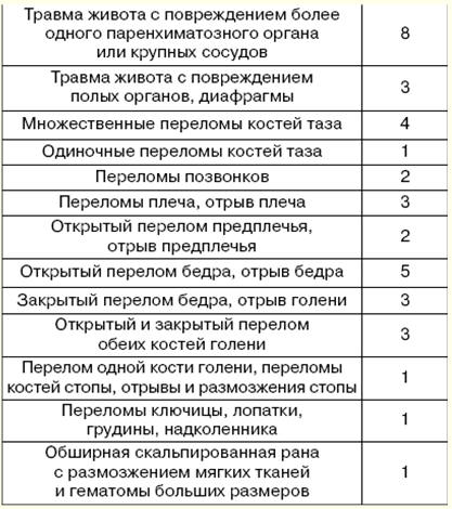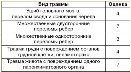 После подсчета баллов получившееся число умножают на коэффициент (от 1,2 до 2,0). Лечение. Основные направления в лечении. 1. Устранение действия травмирующего агента. 2. Устранение гиповолемии. 3. Устранение гипоксии. 30. Геморрагический шок Геморрагический шок - это состояние острой сердечно-сосудистой недостаточности, которая развивается после потери значительного количества крови и приводит к уменьшению перфузии жизненно важных органов. Этиология: травмы с повреждением крупных сосудов, острая язва желудка и двенадцатиперстной кишки, разрыв аневризмы аорты, геморрагический панкреатит, разрыв селезенки или печени, разрыв трубы или внематочная беременность, наличие долек плаценты в матке и др. По клиническим данным и величине дефицита объема крови различают следующие степени тяжести. 1. Не выраженная - клинические данные отсутствуют, уровень артериального давления в норме. Объем кровопотери до 10 % (500 мл). 2. Слабый - минимальная тахикардия, небольшое снижение артериального давления, некоторые признаки периферической вазоконстрикции (холодные руки и ноги). Объем кровопотери составляет от 15 до 25 % (750-1200 мл). 3. Умеренная - тахикардия до 100-120 ударов в 1 мин, снижение пульсового давления, систолическое давление 90-100 мм рт. ст., беспокойство, потливость, бледность, олигурия. Объем кровопотери составляет от 25 до 35 % (1250-1750 мл). 4. Тяжелая - тахикардия более 120 ударов в мин, систолическое давление ниже 60 мм рт. ст., часто не определяется тонометром, ступор, крайняя бледность, холодные конечности, анурия. Объем кровопотери составляет более 35 % (более 1750 мл). Лабораторно в общем анализе крови снижение уровня гемоглобина, эритроцитов и гематокрита. На ЭКГ обнаруживаются неспецифические изменения сегмента ST и зубца Т, которые обусловлены недостаточной коронарной циркуляцией. Лечение геморрагического шока предусматривает остановку кровотечения, применение инфузионной терапии для восстановления ОЦК, использование сосудосуживающих средств или сосудорасширяющих средств в зависимости от ситуации. Инфузионная терапия предусматривает внутривенно введение жидкости и электролитов в объеме 4 л (физиологический раствор, глюкоза, альбумин, полиглюкин). При кровотечении показано переливание одногруппной крови и плазмы в общем объеме не менее 4 доз (1 доза составляет 250 мл). Показано введение гормональных препаратов, таких как мембраностабилизаторы (преднизолон 90-120 мг). В зависимости от этиологии проводят специфическую терапию. 31. Септический шок Септический шок - это проникновение возбудителя инфекции из его первоначального очага в систему крови и распространение его по всему организму. Возбудителями могут быть: стафилококковая, стрептококковая, пневмококковая, менингококковая и энте-рококковая бактерии, а также эшерихии, сальмонеллы и синегнойная палочка и др. Септический шок сопровождается нарушением функции легочной, печеночной и почечной систем, нарушением системы свертывания крови, что приводит к возникновению тромбогеморрагического синдрома (синдром Мачабели), развивающегося во всех случаях сепсиса. На течение сепсиса влияет вид возбудителя, особенно важно это при современных методах лечения. Лабораторно отмечается прогрессирующая анемия (за счет гемолиза и угнетения кроветворения). Лейкоцитоз до 12 χ 109/л, однако в тяжелых случаях, так ка