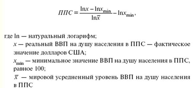 Межстрановые сравнения доходов населения на базе паритетов покупательной способности валют Сопоставление уровня жизни населения различных стран путем сравнения доходов домохозяйств широко применяется международными организациями и национальными правительственными органами при разработке мер социального и экономического развития. В основании Программы международных сопоставлений (ПМС) ВВП, которая реализовывается Организацией экономического сотрудничества и развития (ОЭСР) под руководством ООН с задачей предоставления международных сравнений макроэкономических показателей, лежат расчеты паритетов покупательной способности валют. Паритеты покупательной способности валют (ППСВ) выступают как соотношение двух или нескольких денежных единиц, т. е. количество единиц валюты различных стран, нужное для приобретения определенного типового набора товаров и услуг. Данный набор товаров и услуг можно приобрести за одну денежную единицу базовой страны (одну единицу общей валюты группы стран - долларов США, евро, австрийских шиллингов). Паритет покупательной способности (ППС) может выступать и как частный, устанавливаемый по определенной группе товаров, и как общий, устанавливаемый по всему общественному продукту. Например, если один и тот же набор потребительских товаров, в частности потребительская корзина, стоит 600 руб. РФ или 100 долл. США, то паритет покупательной способности рубля по отношению к доллару США составит: ППС = 600 / 100 = 6 руб. на 1 долл. Паритет покупательной способности валют является в своем роде дефлятором, сходным с индексом потребительских цен, т. е. индексом, характеризующим изменение стоимости потребительской корзины товаров и услуг. Разница среди них заключается в том, что индексы цен находят трансформацию покупательной способности валюты одного государства во времени, а ППСВ определяют трансформацию покупательной способности валют различных государств в один и тот же период времени. К тому же отличаются индексы потребительских цен (так называемые национальные дефляторы) от паритетов покупательной способности (ППС) тем, что допускают игнорирование изменений строения ВВП во времени, в то время как при построении межстранового ППСВ намечается отвлечение (в установленных пределах) от различий в строении национальных объемов ВВП. Применение обменных валютных курсов для межстрановых сопоставлений объема ВВП обеспечивает менее правдоподобную картину фактического благосостояния населения, чем применение ППС. Так как расчеты с использованием обменных валютных курсов отображают не только отличия в количестве товаров и услуг, произведенных в соответствующей стране, но также и различия в уровне цен между странами. ППС получают путем прямого сопоставления цен на товары и услуги в различных странах, и, когда их применяют для расчетов сопоставимых показателей ВВП, они отражают более точно различия в объемах произведенных товаров и услуг. Международные сопоставления удельных (душевых) значений ВВП, которые приведены благодаря ППСВ к одному размеру цен, дают возможность обнаружить отличия в степенях экономического достатка населения различных государств, оценить экономический потенциал стран Европейского и Мирового содружества на базе сопоставлений объемов ВВП. Сопоставление ППСВ с валютным 