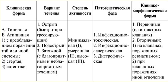 Госпитальная терапия. Заболевания сердечно-сосудистой системы. Инфекционный эндокадит (конспект лекций) Справочник / Конспекты лекций, шпаргалки Оглавление (развернуть) ЛЕКЦИЯ № 5. Заболевания сердечно-сосудистой системы. Инфекционный эндокадит Инфекционный эндокардит (ИЭ) - заболевание, заключающееся в полипозно-язвенном поражении клапанного аппарата сердца (нередко с развитием клапанной недостаточности) или пристеночного эндокарда (реже поражается эндотелий аорты или ближайшей крупной артерии). Вызывается заболевание различными патогенными микроорганизмами и сопровождается системным поражением внутренних органов (почек, печени, селезенки) на фоне измененной реактивности организма. До сих пор в различных печатных изданиях можно встретить ранее использовавшиеся термины "бактериальный эндокардит", "затяжной септический эндокардит" для обозначения данного патологического процесса. Однако именно вытеснивший их термин "инфекционный эндокардит" лучше отражает причину заболевания, вызываемого самыми различными микроорганизмами - бактериальными агентами, риккетсиями, вирусами и грибами. Во всем мире увеличивается численность больных ИЭ. Это связано с наличием так называемых групп риска (пациенты с атеросклеротическими, ревматическими, травматическими повреждениями клапанов, с пороками сердца или клапанов, дефектом межжелудочковой перегородки, коарктацией аорты) как следствие того, что инфекция легче возникает на патологически измененном клапане или эндокарде. Этиология. Патогенными возбудителями болезни наиболее часто являются кокковая группа микроорганизмов - стрептококки (зеленящий стрептококк ранее выделялся в 90 % случаев), стафилококки (золотистый, белый), энтерококк, пневмококк. В последние годы в связи с широким использованием антибиотиков спектр микробных возбудителей стал другим. Болезнь может вызывать грамотрицательная флора (кишечная палочка, синегнойная палочка, протей, клебсиелла), появились данные о важной роли патогенных грибов, сарцин, бруцелл и вирусов. Заболевания, вызванные этими возбудителями, протекают тяжелее, особенно эндокардит, вызванный грибковой инфекцией (возникает, как правило, в связи с нерациональным приемом антибиотиков). Однако у ряда больных истинный возбудитель заболевания не обнаруживается (частота отрицательного результата посева крови 20-50 %). Часто инфекция возникает на месте протезированного клапана - так называемый протезный ИЭ, развивающийся в основном в течение 2 месяцев после оперативного вмешательства по протезированию клапана сердца. В этом случае возбудитель заболевания чаще всего имеет стрептококковую природу. Таким образом, источники инфекции и бактериемии при ИЭ самые различные (операции в полости рта, операции и диагностические процедуры в мочеполовой сфере, оперативное вмешательство на сердечно-сосудистой системе (в том числе протезирование клапанов), длительное пребывание катетера в вене, частые внутривенные вливания и эндоскопические методы исследования, хронический гемодиализ (артериовенозный шунт), внутривенное введение наркотиков). Выделяют так называемый первичный ИЭ, развившийся на интактных клапанах, а также ИЭ на фоне врожденных и приобретенных изменений сердца и его клапанного аппарата - вторичный эндокардит. Эти изменения и позво