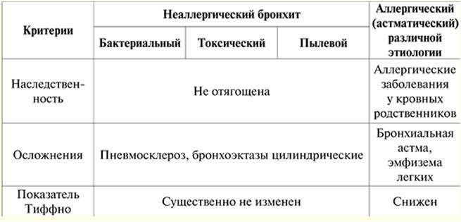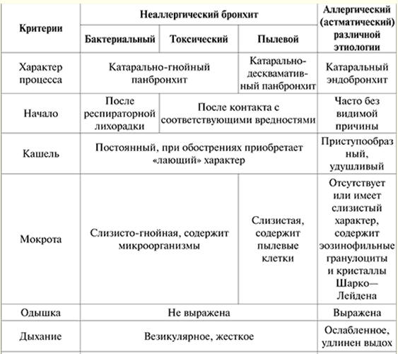 Госпитальная терапия. Заболевания органов дыхания. Хронический бронхит (конспект лекций) Справочник / Конспекты лекций, шпаргалки Оглавление (развернуть) ЛЕКЦИЯ № 7. Заболевания органов дыхания. Хронический бронхит Хронический обструктивный бронхит - диффузное неаллергическое воспалительное поражение бронхиального дерева, обусловленное длительным раздражающим воздействием на бронхи различных агентов, имеющее прогрессирующее течение и характеризующееся нарушением легочной вентиляции по обструктивному типу, слизеобразования и дренирующей функции бронхиального дерева, что проявляется кашлем, отделением мокроты и одышкой. Согласно определению ВОЗ, если больной откашливает мокроту на протяжении большинства дней не менее 3 месяцев подряд в течение более 2 лет подряд, заболевание рассматривается как хронический бронхит (ХБ). Хронический бронхит подразделяется на первичный и вторичный. Первичный ХБ - самостоятельное заболевание, не связанное с иными бронхолегочными процессами или поражением других органов и систем, при котором наблюдается диффузное поражение бронхиального дерева. Вторичный ХБ развивается на фоне других заболеваний - как легочных (туберкулез, бронхоэктатическая болезнь и т. д.), так и внелегочных (уремия, застойная сердечная недостаточность и т. д.). Чаще всего носит локальный характер (сегментарный). Рассмотрим первичный ХБ. Этиология. В развитии ХБ играют роль как экзогенные факторы (табачный дым, загрязнение воздуха, неблагоприятные профессиональные условия, климатические и инфекционные факторы), так и эндогенные факторы (патология носоглотки, нарушение дыхания через нос, повторные острые респираторные заболевания, острые бронхиты и очаговая инфекция верхних дыхательных путей, наследственная предрасположенность, нарушение обмена веществ (ожирение)). Патогенез. Под воздействием экзогенных и при участии эндогенных факторов в трахеобронхиальном дереве изменяются структурно-функциональные свойства слизистой оболочки и подслизистого слоя, развивается воспаление слизистой оболочки, нарушаются проходимость и дренажная функция бронхов. Структурно-функциональные изменения слизистой оболочки и подслизистого слоя выражаются в гиперплазии и гиперфункции бокаловидных клеток, бронхиальных желез, гиперсекреции густой и вязкой слизи, что приводит к нарушению в системе мукоцилиарного транспорта. Количество вырабатываемого секреторного IgA-лизоцима и лактоферрина снижается. Развивается отек слизистой оболочки, а затем - атрофия и метаплазия эпителия. Воспаление слизистой оболочки вызывают различные раздражающие вещества в сочетании с инфекцией (вирусной и бактериальной). Химические вещества (поллютанты), содержащиеся в воздухе, оказывают повреждающее действие на дыхательные пути, возникает отек слизистой оболочки и происходит торможение активности реснитчатого эпителия. Это приводит к нарушению эвакуаторной и снижению барьерной функции слизистой оболочки бронхов. Катаральное содержимое сменяется катарально-гнойным, а затем гнойным. Распространение воспалительного процесса на дистальные отделы бронхиального дерева нарушает выработку сурфактанта и снижает активность альвеолярных макрофагов, фагоцитирующих чужеродные частицы. Если возникший в случае воспаления бронхоспазм выражен ре