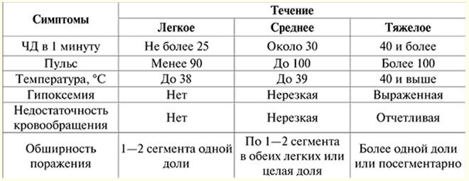 Госпитальная терапия. Заболевания органов дыхания. Пневмония (конспект лекций) Справочник / Конспекты лекций, шпаргалки Оглавление (развернуть) ЛЕКЦИЯ № 8. Заболевания органов дыхания. Пневмония Пневмония - острое инфекционно-воспалительное заболевание, имеющее очаговый характер, при котором в патологический процесс вовлекаются респираторные отделы и интерстициальная соединительная ткань легких. Классификация Е. В. Гембицкого (1983 г.). По этиологии: 1) бактериальные (с указанием возбудителя); 2) ирусные (с указанием возбудителя); 3) корнитозные; 4) риккетсиозные; 5) микоплазменные; 6) грибковые; 7) смешанные; 8) инфекционно-аллергические; 9) неустановленной этиологии. По патогенезу: 1) первичные (самостоятельный острый воспалительный процесс); 2) вторичные (осложнение болезней сердечно-сосудистой системы с нарушением кровообращения в малом круге, хронические болезни почек, системы крови, обмена веществ, инфекционные болезни или развиваются на фоне хронических заболеваний органов дыхания). Клинико-морфологическая характеристика: 1) паренхиматозные (для пневмококковой пневмонии): крупозные; очаговые; 2) интерстициальные. По локализации и протяженности: односторонние; двусторонние. По тяжести: крайне тяжелые; тяжелые; средней тяжести; легкие и абортивные. По течению: острые; затяжные (рентгенологическое и клиническое разрешение пневмонии). Этиология. Большинство пневмоний имеет инфекционное происхождение. Пневмонии аллергические и обусловленные действием физических или химических факторов встречаются редко. Бактериальные пневмонии диагностируются чаще у лиц среднего и пожилого возраста; вирусные пневмонии - у молодых. В этиологии первичных бактериальных пневмоний ведущая роль принадлежит пневмококкам. В период эпидемии гриппа возрастает роль вирусно-бактериальных ассоциаций (чаще стафилококков), а также условно-патогенных микроорганизмов. При вторичных пневмониях ведущую этиологическую роль играют грамотрицательные бактерии (клебсиелла пневмонии и палочка инфлюэнцы); в возникновении аспирационных пневмоний велико значение анаэробной инфекции. Патогенез. Инфекционный возбудитель попадает извне в респираторные отделы легких через бронхи: ингаляционно и аспирационно (из носо- или ротоглотки). Гематогенным путем возбудитель попадает в легкие преимущественно при вторичных пневмониях или при тромботическом генезе пневмоний. Лимфогенное распространение инфекции с возникновением пневмонии наблюдается лишь при ранениях в грудную клетку. Имеется также эндогенный механизм развития воспаления в легочной ткани, обусловленный активацией микрофлоры, находящейся в легких. Роль его велика при вторичных пневмониях. Развитию пневмонии способствуют неблагоприятные факторы внешней и внутренней среды, под влиянием которых происходят снижение общей неспецифической резистентности организма (подавление фагоцитоза, выработки бактериолизинов и пр.) и подавление местных защитных механизмов (нарушение мукоцилиарного клиренса, снижение фагоцитарной активности альвеолярных макрофагов и нейтрофилов и др.). Существенное значение в патогенезе пневмоний придается также аллергическим и аутоаллергическим реакциям. Сапрофиты и патогенные микроорганизмы, становясь антигенами, способствуют выработке антител, которые фиксируются на 