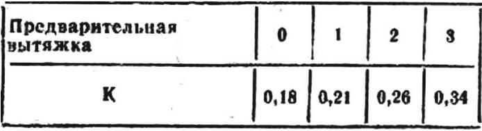Значения опытного коэффициента К в зависимости от предварительной вытяжки приведены в таблице.