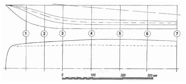 В начале выпиливаются шпангоуты - для этого используется фанера толщиной около 3 мм. Следует учесть, что со стороны палубы необходимо оставить технологический припуск шириной 10 мм. Далее подготавливается стапельная доска размерами 200x700x30 мм, на которой размечаются ось симметрии корпуса и оси шпангоутов. Затем с помощью циркулярной пилы в доске по осям шпангоутов делаются пропилы на глубину 10 мм. Ширина пропилов должна быть такой, чтобы в них легко вставлялся шпангоут и фиксировался здесь с помощью миниатюрных деревянных клиньев. Таким образом на стапеле выставляются все шпангоуты, пространство между ними заполняется пенопластовыми брусочками, которые закрепляются на местах эпоксидным клеем. После полимеризации смолы лишний пенопласт срезается острозаточенным ножом, а получившийся корпус обрабатывается шкурками различной зернистости и оклеивается двумя слоями стеклоткани с помощью эпоксидного связующего. После отверждения смолы корпус снимается со стапеля и в нем выбирается углубление под гидропневматический двигатель, а со шпангоутов срезается технологический припуск. Остается оклеить палубу стеклотканью, загрунтовать корпус эпоксидкой, зашкурить его и окрасить автоэмалью подходящего цвета. Руль модели вырезается из дюралюминиевого профиля "тавр" или "уголок" с толщиной полок 1-2 мм. При желании на корпусе можно установить фонарь-обтекатель - проще всего сделать его из двухлитровой пластиковой бутыли, вырезав из нее подходящий по форме участок оболочки. Подогнав обтекатель к плоскости палубы, следует очертить карандашом место стыка, прорезать пенопласт острым ножом на глубину 3 - 5 мм и все тем же эпоксидным клеем закрепить в прорези оболочку. Окрашивать такой фонарь лучше всего изнутри - тогда внешняя сторона получится глянцевой и однородной. Запуск модели предпочтительнее производить на закрытом водоеме. Надо учесть, что ее скорость, а также продолжительность работы гидропневматического водомета будут зависеть от проходного сечения штуцера. Чтобы подобрать оптимальное, удобнее всего вклеить в водомет пластмассовое сопло и произвести ряд пробных запусков, постепенно расширяя отверстие сверлами увеличивающегося диаметра. В процессе экспериментов остается только фиксировать данные суденышка - скорость и продолжительность движения.