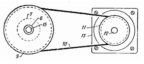 Журнал ГДР "Modelbau und Basteln" № 10 за 1960 год приводит следующее описание модели крыльчатого движителя. К днищу судна (рис. 5) прикреплен круглый кожух 1, внутри которого расположен ротор движители 2 с верхним и нижним дисками 3. Сквозь диски ротора 3 пропущены оси 4, к которым прикреплены лопасти 5. Сквозь верхний диск ротора пропущен трубчатый гребной вал 6, который с помощью фланца прикреплен к диску снизу. Дальше вал проходит сквозь фигурную крышку 7, прикрепленную к кожуху 1. Поверх крышки на вал надето и прижато к валу установочное кольцо 8, а поверх установочного кольца надет и прикреплен к валу ведущий шкив 9. На шкив надевается приводной ремень 10, идущий от приводного шкива 11 сидящего на валу 12 двигателя 13 (рис. 6). Верхний конец вала 12 вращается в подшипнике 14. прикрепленном к палубе модели.