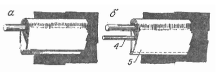 Это происходит потому, что величина OA (в данном случае расстояние от оси 15 до пальца 19) остается все время постоянной. Изменять величину упора, передвигая точку N ближе к центру О или же в самый центр О, и тем останавливать движение судна (рис. 3, I) невозможно. Величину ON в этой модели берут в пределах 1/6 - 1/3,5 радиуса диска движителя. При большей или меньшей величине эксцентрицитета угол атаки будет или слишком велик, или слишком мал, поэтому лопасти не создадут необходимой силы упора. Лопасти движителя делают из тонкого металлa (рис. 8), причем передний валик, на котором загибают металл, берут вдвое толще оси лопасти.