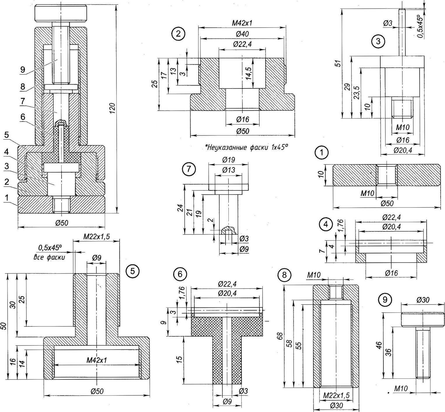 Для получения необходимой шестерни, причем в нескольких экземплярах (чтобы хватило всем кружковцам-моделистам), проектируем и изготавливаем пресс-форму. Сделать ее не очень сложно: в основном это токарная работа, детали малогабаритные, а подходящее оборудование, как правило, в школьных мастерских имеется. При вытачивании деталей следует обращать внимание на чистоту поверхностей и точность сопряжения пуансона с корпусом, а также донышка, вкладыша и матрицы - от этого зависят точность и качество готовых шестерен. Единственная деталь, которая может вызвать трудности при изготовлении, - матрица. На ее торцевой поверхности (так же, как и на изготавливаемой шестерне) следует нарезать зубья с модулем m = 0,8 мм. Чтобы обеспечить необходимое качество, эту операцию предпочтительнее производить на специальном зуборезном станке. Но в кружках по моделизму такого оборудования нет (во всяком случае, я не встречал), а заказывать на стороне не всем по карману. Поэтому, как компромиссный вариант, можно обработать зубья матрицы на обычном фрезерном станке модульной фрезой с использованием делительной головки или другого аналогичного приспособления. При отсутствии необходимой модульной фрезы можно заточить отрезную. Но это крайний случай, поскольку получить качественный профиль зуба на матрице, а следовательно, и на готовой шестерне, будет весьма проблематично. Увы, работа в обычной провинциальной школе часто заставляет идти на упрощения и компромиссы. Итак, трудности первоначального этапа преодолены, все необходимые детали пресс-формы изготовлены и подогнаны друг к другу. Можно приступать к самому главному - отливке так нужных нам тарельчатых шестерен. А это, как показала практика, при наличии качественной пресс-формы совсем несложно и доступно даже ученикам 4-5-х классов. Сборку пресс-формы начинаем с предварительной смазки машинным маслом тех ее частей, которые будут контактировать с пластмассой (желательно, чтобы они были изготовлены из бронзы). Сначала в донышко последовательно устанавливаем матрицу и вкладыш и снизу поджимаем этот узел основанием, а сверху навинчиваем корпус. В его отверстие загружаем сырье - любой термопласт: полиэтилен, капролактам (этот материал в данном случае предпочтительнее, поскольку имеет более высокие прочностные и износостойкие характеристики), полистирол и т.п. Загрузочный материал лучше применять в виде гранул. Однако для кружковцев приобрести гранулированное промышленным способом сырье - задача практически невыполнимая. Как правило, мы его получаем из ненужных флаконов, игрушек и т.п., разрезая их на кусочки размерами приблизительно 2х2 мм. Необходимое количество сырья определяется опытным путем: можно использовать весы, положив на одну чашу готовую деталь, а на другую исходный материал по весу чуть больше, чем шестерня. Засыпав сырье, вставляем в корпус пуансон, навинчиваем стакан и в заключение устанавливаем винт. Собранную пресс-форму помещаем в муфельную печь и нагреваем до температуры, обеспечивающей вязко-текучее состояние пластмассы (определяется по справочнику или опытным путем). После небольшой выдержки достаем пресс-форму из печи, быстро закручиваем винт до упора и резко охлаждаем в воде. Разобрав пресс-форму, извлекаем шестерню и производим ее чистовую доработку. В результате получа