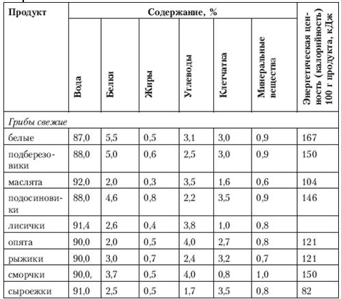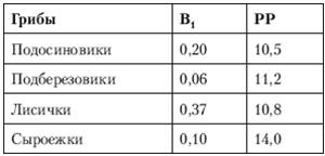 Грибы наиболее богаты витаминами группы В и прежде всего - витаминами В1,В2 и РР (табл. 2.4). Так, в желтых лисичках витамина В1 почти столько же, сколько в говяжьей печени. Таблица 2.4. Содержание в грибах некоторых витаминов (мг на 100 г сырой массы)