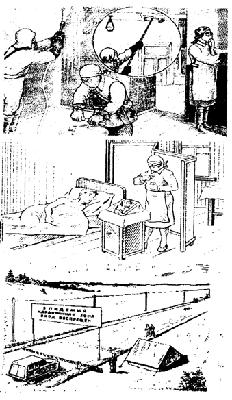 - изоляция, лечение, санобработка персонала и населения, специальная обработка одежды, помещений, местности.