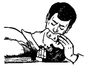 При этом корень языка поднимается и освобождает вход в гортань, а рот пострадавшего открывается. Оказывающий помощь наклоняется к лицу пострадавшего, делает глубокий вдох открытым ртом, затем полностью плотно охватывает губами открытый рот пострадавшего и делает энергичный выдох, с некоторым усилием вдувая воздух в его рот; одновременно он закрывает нос пострадавшего щекой или пальцами руки, находящейся на лбу (рис. 21). При этом обязательно следует наблюдать за грудной клеткой пострадавшего, которая должна подниматься. Как только грудная клетка поднялась, нагнетание воздуха приостанавливают, оказывающий помощь приподнимает свою голову, происходит пассивный выдох у пострадавшего. Для того чтобы выдох был более глубоким, можно несильным нажатием руки на грудную клетку помочь воздуху выйти из легких пострадавшего. Если у пострадавшего хорошо определяется пульс и необходимо проводить только искусственное дыхание, то интервал между искусственными вдохами должен составлять 5 с, что соответствует частоте дыхания 12 раз в минуту.