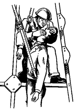 Кроме расширения грудной клетки хорошим показателем эффективности искусственного дыхания может служить порозовение кожных покровов и слизистых оболочек, а также выход пострадавшего из бессознательного состояния и появление у него самостоятельного дыхания. При проведении искусственного дыхания оказывающий помощь должен следить за тем, чтобы вдуваемый воздух попадал в легкие, а не в желудок пострадавшего. При попадании воздуха в желудок, о чем свидетельствует вздутие живота "под ложечкой", осторожно надавливают ладонью на живот между грудиной и пупком. При этом может возникнуть рвота, поэтому необходимо повернуть голову и плечи пострадавшего набок (лучше налево), чтобы очистить его рот и глотку. Если после вдувания воздуха грудная клетка не поднимается, необходимо выдвинуть нижнюю челюсть пострадавшего вперед (см. рис. 18). Если челюсти пострадавшего плотно стиснуты и открыть рот не удается, следует проводить искусственное дыхание по способу "изо рта в нос"(рис. 22). При отсутствии самостоятельного дыхания и наличии пульса искусственное дыхание можно проводить и в положении сидя или вертикальном, если несчастный случай произошел в корзине вышки, на опоре или на мачте (рис. 23 и 24). При этом как можно больше запрокидывают голову пострадавшего назад или выдвигают вперед нижнюю челюсть. Остальные приемы те же. Маленьким детям вдувают воздух одновременно в рот и нос, охватывая своим ртом и нос ребенка (рис. 25). Чем меньше ребенок, тем меньше воздуха нужно ему для вдоха и тем чаще следует производить вдувание по сравнению со взрослым человеком (до 15-18 раз в минуту).
