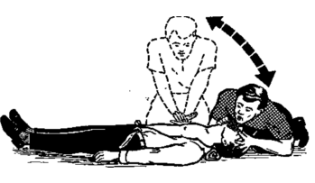 В паузах рук с грудины не снимают (если помощь оказывают два человека), пальцы остаются приподнятыми, руки полностью выпрямленными в локтевых суставах. Если оживление проводит один человек (рис. 28), то на каждые два глубоких вдувания он производит 15 надавливаний на грудину, затем снова делает два вдувания и опять повторяет 15 надавливаний и т. д. За минуту необходимо сделать не менее 60 надавливаний и 12 вдуваний, т. е. выполнить 72 манипуляции, поэтому темп реанимационных мероприятий должен быть высоким. Опыт показывает, что больше всего времени затрачивается на искусственное дыхание. Нельзя затягивать вдувание, как только грудная клетка пострадавшего расширилась, его надо прекращать.