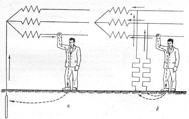 Рис. 2. Однофазное включение в цепь тока: а) с заземленной нейтралью; б) с изолированной нейтралью