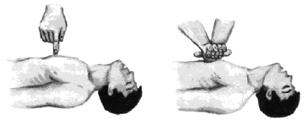 Для поддержания кровообращения у пострадавшего в случае прекращения работы сердца необходимо одновременно с искусственным дыханием производить непрямой (закрытый) массаж сердца. Если реанимацию (оживление) проводит один человек, то через каждые два вдоха делается 15 надавливаний на грудину. При участии в помощи двух человек соотношение "дыхание - массаж" составляет 1:5. В некоторых случаях, когда сердце остановилось у здорового человека, достаточно сделать несколько надавливаний на грудную клетку, чтобы восстановить естественную работу сердца. Оказание доврачебной помощи может быть длительным, так как в конечном итоге заключение о смерти может сделать только врач. Причиной длительного отсутствия пульса у пострадавшего при появлении других признаков оживления (восстановление самостоятельного дыхания, сужение зрачков и др.) может быть фибрилляция сердца. Однако и в этом случае необходимо продолжать оживление до прибытия врача. Авторы: Вольхин С.Н., Петрова С.П., Петров В.П.