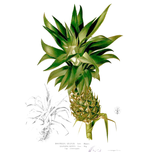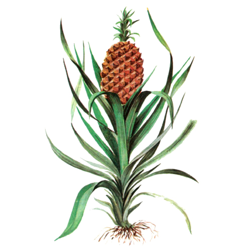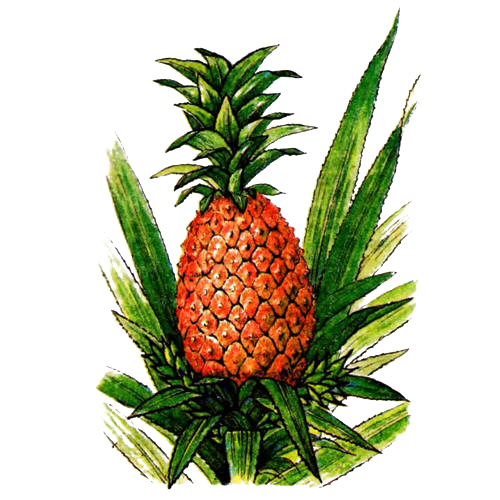 Ананас настоящий. Справочная информация Мощное многолетнее травянистое растение семейства бромелиевых, родом из Бразилии, где до сих пор встречаются его дикорастущие формы. Ананас широко возделывается в тропиках. Наибольшие площади под культурой растения для последующей переработки находятся на Гавайских островах. Из тропических стран ананас экспортируется во все государства умеренного пояса. Мякоть соплодия содержит 12-15 % сахаров (преимущественно сахарозу), азотистые вещества (0,4-0,5 %), органические кислоты (0,5-0,7 %), главным образом лимонную, а иногда только ее, витамин С (40-50 мг%), бромелин, минеральные вещества - соли калия (320 мг%), меди (8,3 мг на килограмм съедобной части). Употребляют соплодия в свежем и консервированном виде. Ананасы идут на приготовление напитков, вин, пуншей, ликеров, варений, джемов и спирта. Ананасовый сок содержит бромелин - смесь ферментов, близких к пепсину и папаину, обладающих противовоспалительным и противоотечным действием. Ананасы высоко ценятся в лечебно-диетическом питании. Сок рекомендуется при желудочно-кишечных заболеваниях для улучшения пищеварения, при болезнях печени, сердечно-сосудистой системы, почек, при малокровии. Сок ананаса - отличное противоцинготное средство. Но применение ананаса следует ограничить при болезнях желудка и катарах с повышенной кислотностью. В гомеопатии ананас назначают при функциональных расстройствах нервной системы. В Индии сок из листьев ананаса используют как противоглистное средство. Авторы: Дудниченко Л.Г., Кривенко В.В.