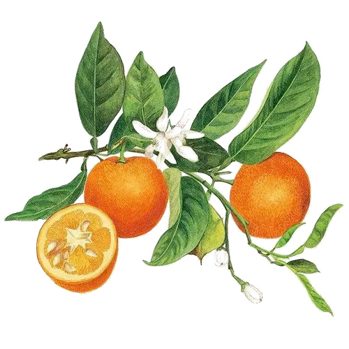 Апельсин сладкий, Citrus sinensis. Способы применения, происхождение растения, ареал, ботаническое описание, выращивание Плоды употребляют в свежем виде, перерабатывают на соки, консервы, джем, цукаты, мармелад, используют для ароматизации кондитерских изделий, эфирное масло получают из кожуры, цветков и листьев, из кожуры добывают пектин. Пульпа после отжима сока используется на корм скоту. Сладкий апельсин - один из ведущих подвоев цитрусовых культур. Наиболее важный вид среди цитрусовых культур. Попав в конце XV в. в Европу, а вскоре после этого в Африку и Америку, апельсин стал повсеместно одной из важнейших плодовых культур. В диком состоянии апельсин неизвестен. Произошел из Юго-Восточной Азии. Известно, что лучшие по качеству плоды производятся в субтропической зоне - в бассейне Средиземноморья и в Калифорнии (США). В тропиках лучшими являются участки на высоте 800-1200 м над ур. моря в районах муссонного климата. Деревья, растущие на влажных тропических, равнинах, как правило, дают плоды пониженного качества (отсутствие нормальной окраски и аромата, низкая кислотность). В этих условиях также нарушаются нормальные сроки цветения, оно становится нерегулярным, растянутым (например, в индийских штатах Керала и Ассам, в Индонезии). Апельсин образует мощные долговечные (до 70 лет) деревья высотой до 20 м, иногда (у корольков) до 4-5 м. Крона шаровидная или пирамидальная, плотная, густооблиственная. Ветви часто с колючками, длина которых иногда достигает 10 см. Цветки пазушные, одиночные или в пучках по 2-3, ароматные, тычинок 20-25 со сросшимися или почти свободными нитями, у некоторых сортов тычинки стерильные. Плоды шаровидные, несколько вытянутые или сдавленно-шаровидные различной величины. Кожура гладкая или шероховатая, желто-оранжевая, без горечи, с масляными железками; мякоть яркоокрашенная, сочная, кисло-сладкая. Число долек 9-13; семена белые, многозародышевые (от 2 до 12). В плодах содержатся лимонная кислота (0,6-2,0 %), сахара (от 6-8 до 15 %); витамины: С, каротин, Р (гесперидин, эриодиктиол) - в кожуре и соке. Имеются бессемянные формы. По требовательности к температуре среды апельсин является в большей степени субтропическим, а не тропическим растением. Он обладает довольно высокой устойчивостью к низким температурам. Так, некоторые сорта выдерживают понижения температуры до минус 4-6 °C. Сорта делят на обыкновенные, пупочные и кровавые. Красный цвет мякоти и кожуры кровавых апельсинов вызывается пигментом антоцианом. По классификации П. М. Жуковского сорта объединяют в 4 группы. Обыкновенные сорта имеют плоды разных размеров, от малых (5 х 5) см до крупных, шаровидные или овальные, многосемянные, с желтой мякотью, кисло-сладковатые, со значительным числом семян, урожайность высокая. У пупочных сортов плоды крупные, массой 200-250 г, иногда до 500-600 г. Особенностью плодов является наличие выроста на верхушке плода. Плоды сравнительно ранние, очень вкусные. Отличаются повышенной морозостойкостью. Основные сорта: Вашингтон Навел, Робертсон Нэйвл, Томсон Нэйвл и др. Кроме этих групп сортов имеются многочисленные гибриды: тангоры (апельсин х мандарин), цитранжи (апельсин х трифолиата), цитранжкваты (апельсин х трифолиата) х кумкват, цитранжеремы (апельсин х трисролиата) х пустынный лайм и др. К наиболее важным сортам апельсина в мировом цитрусоводстве относятся с