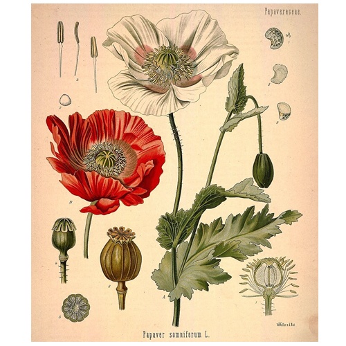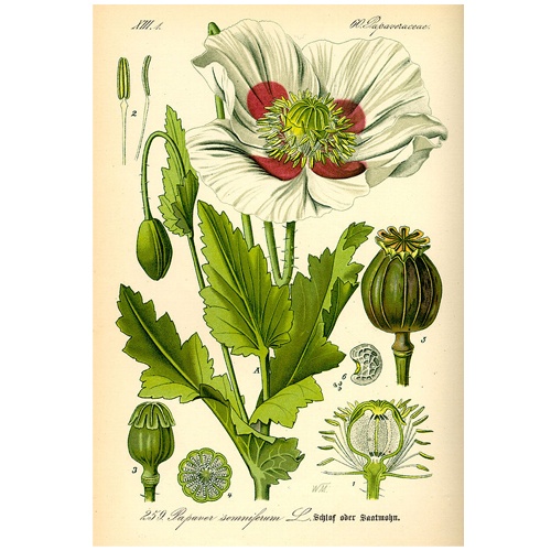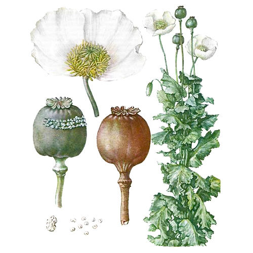 Мак снотворный (Papaver somniferum) - однолетнее растение с правильным раздельнолепестным венчиком различной окраски, от белой до лиловой. Плод - коробочка. Семена многочисленные. Научное название рода происходит от латинского слова papa - хлеб или детская каша и verum - настоящий. В прежние времена полагали полезным подмешивать сок мака в детскую пищу, чтобы дети крепче спали. Видовое название Somniferum в переводе - снотворный. Мак снотворный - растение самоопыляющееся, но в значительной степени склонное к перекрестному опылению: в цветках часто находят уховерток, мух, жуков, шмелей и пчел; перелетая и переползая с цветка на цветок, эти насекомые переопыляют цветки. Маковые семена (наиболее ценятся с голубой окраской) - важнейший продукт для хлебопекарных и кондитерских фабрик, ныне недоступный для домохозяек, но в прошлом охотно ими использовавшийся в домашней выпечке. Из семян мака получают масло (40-60 процентов). Оно светло-желтого цвета, долго не горкнет и, говорят, более приятного вкуса, чем все остальные растительные масла. Применяется в качестве пищевого продукта, для фармацевтических целей, приготовления красок для живописи, лучших сортов мыла и лаков. Маковые семена высококалорийны - в Древней Греции атлеты, готовившиеся к Олимпийским играм, в изобилии потребляли мак с вином и медом. Маковые жмыхи (макуха), содержащие до 12 процентов жира и до 36 процентов белка, идут на корм скоту. Все сорта мака подразделяют на масличные с малоразвитой системой млечников и скудным латексом и опийные - с хорошо развитий системой млечников и обильным латексом. Семена мака обнаружены в предметах, относящихся к шумерской культуре (IV-III тысячелетия до нашей эры), в раскопках неолитических свайных жилищ в Швейцарии, относящихся к III тысячелетию до нашей эры. Шумеры, ассирийцы, древнейшие обитатели Средней Азии, по-видимому, были знакомы с усыпляющим действием млечного сока мака. Древние египтяне готовили из мака снотворное зелье. Древние греки посвятили маки, растущие среди хлебов, богине земледелия и жатвы Деметре. Богиню изображали с маком в руке. Видное место занял мак в религии и мифологии римлян. Мак включен в обряды современных народов. Если в Греции Гере - богине брака и супружеской любви - приносили в жертву коробочки мака, то в Германии семена мака приносят в жертву новобрачным - сыплют их им в башмаки. В белорусском свадебном обряде раздавали пшенную кашу с маком. В Англии есть "день маков", когда ими и другими красивыми цветами украшают подъезды домов и возлагают их к памятникам погибшим на войне. Первым, упомянувшим о надрезах коробочек, вытекании млечного сока и его лекарственных свойствах, был Теофраст. По его свидетельству, латекс мака (по-гречески "опион", откуда и произошло слово "опий", или "опиум") употребляли как усыпляющее и болеутоляющее средство этруски, эллины и римляне. Но опасность злоупотребления нависала над жизнью людей уже и в те давние времена, о чем предостерегал свое и грядущие поколения Плиний Старший. Однако Европа была далека от преимущественного использования мака как наркотика. Целью культуры мака здесь долгое время оставались семена и отчасти получаемое из них масло. В отличие от американских индейцев, куривших табак, на Востоке (вероятнее всего, в Средней Азии) возникла гораздо более пагубная привычка курить опиум. Европейцы, 