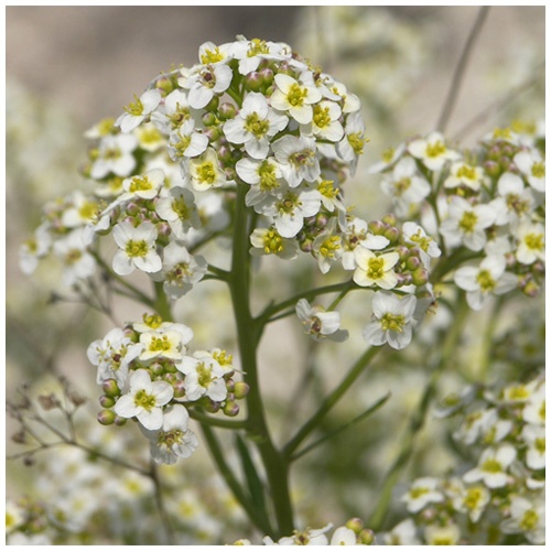 Цветки белые. Соцветие большое, широкометельчатое. Плод - почти шаровидный голый стручок. Семена шаровидные, мелкие.
