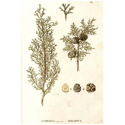 Химический состав: В кипарисах содержатся эфирные масла, смолы, воск, танины, антоцианы и другие биологически активные вещества.
