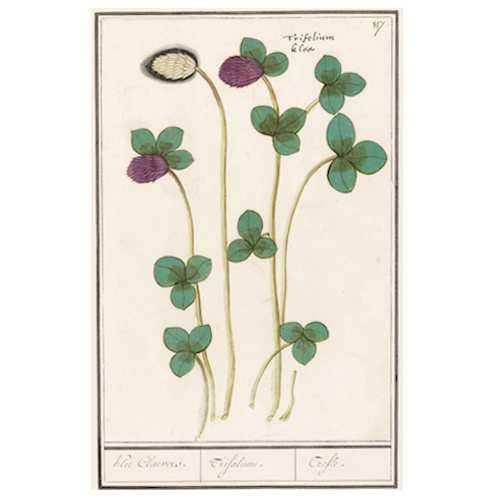 Лист клевера. Мифы, традиции, символизм Символ ирландско-кельтского национального сознания, почитавшийся уже друидами дохристианской эпохи как священное символическое растение и позднее истолкованный как символ Троицы (троичности). Благодаря этому он стал атрибутом св. Патрика, который убивает змею посохом с клеверообразным крестом. Четырехлепестковый лист клевера является сегодня знаком счастья, что объясняется чисто внешне - его редкостью (кто такой лист найдет, тому посчастливилось, а потому сам лист клевера приносит счастье). Первоначальная символика, вероятно, восходит к высокой жизненной силе растения, которая сделала его воплощением мощной жизненной полноты. В средневековой любовной лирике "зеленый клевер" играет большую роль как место любовных встреч, и, например, "дать клятву над зеленым клевером" означает придать ей еще большую жизненную силу. Поскольку клевер когда-то стали сажать на могилах, вероятно, как намек на новую жизнь после воскресения, он смог также стать символом прощания часто вместе с розами (символ любви) и фиалками (цветы с фиолетовым цветом покаяния). Автор: Бидерманн Г.