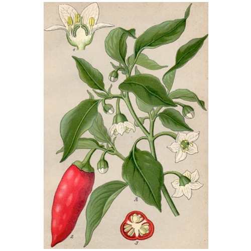 Химический состав: Основными активными веществами перца красного острого являются капсаицин и дигидрокапсаицин, которые обладают острым вкусом и ароматом. Также в перце красном остром содержатся каротиноиды, витамины С и Е, флавоноиды и другие биологически активные вещества.