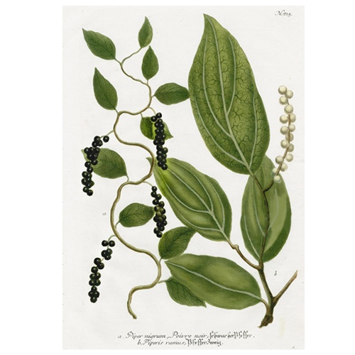 Перец черный, Piper nigrum L. Ботаническое описание, распространение, химический состав, особенности использования Семейство перцевые - Piperaceae. Лиана длиной до 15 м. Листья длиной 80-100 мм, достигают даже размеров руки. Плоды округлые, сначала зеленого цвета, затем приобретают желтый или красный цвет. Початки длиной 80-140 мм содержат по 20-30 костянок. Плодоносит 2 раза в год 25-30 лет. Родина перца - Ассам и Малабар. Известен только в культуре. В перце имеется смола (1-2 %), жирное масло (6-12 %), много крахмала. Жгучим веществом перца является алкалоид пиперин (5-9 %), а запах обусловлен присутствием эфирного масла (0,9-2,5 %). В состав эфирного масла входят дипентен, фелландрен и сесквитерпен кариофиллен. Широко применяется в пищевой промышленности как пряно-вкусовое растение. Как пряность в пищевом рационе способствует пищеварению и улучшает аппетит. Употребляется для супов, подливок, соусов, овощных салатов, маринадов, приготовления всех видов мяса, рыбы, томатов, консервированных овощей. Авторы: Дудченко Л.Г., Козьяков А.С., Кривенко В.В.