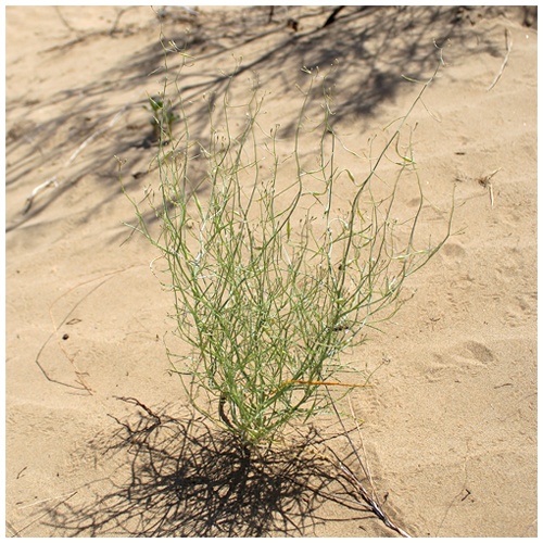 Однолетнее растение 15-30 см высотой, голое или кое-где щетинистое, серовато-зеленое, от основания, растопыренно-ветвистое, с тонкими веточками.