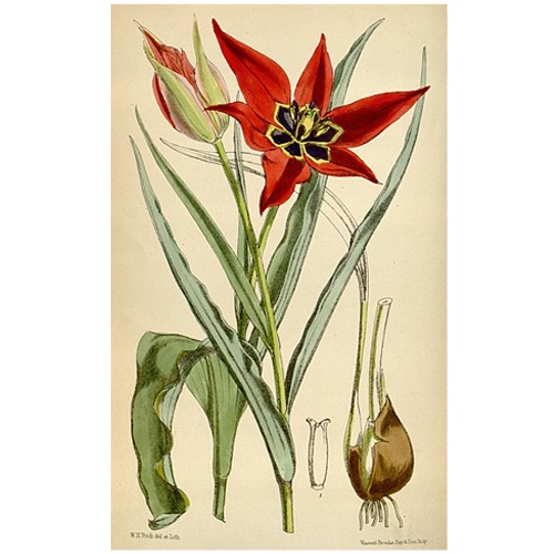 Как ни прекрасен тюльпан своей окраской, как ни оригинальна его форма, но, странным образом, почему-то ни греческая, ни римская мифология не создали о нем никакого сказания. И это тем более странно, что тюльпаны в диком состоянии в обилии растут на священной горе Иде, в Греции, где их не могли не заметить как сами жители, так и все те, кто были творцами мифологии. Первые сведения об этом прелестном цветке мы встречаем в Персии. В этой стране сказаний и песен о розе оригинальный цветок тюльпана в виде фонаря или кубка не мог остаться незамеченным и носил название "дульбаш" - турецкая чалма, от которого впоследствии произвели слово "тюрбан", а также и русское название цветка - "тюльпан". Он был воспет многими персидскими поэтами, и особенно знаменитым Хафизом, который говорит, что с девственной прелестью тюльпана не могут сравниться ни нежные движения кипариса, ни даже сама роза. Но еще большей любовью пользовался тюльпан на Востоке у турок, жены которых разводили его в обилии в сералях, где многим из них, быть может, он напоминал даже их детство, родину, утерянную свободу. Вследствие всего этого, вероятно, в сералях ежегодно справлялся чудный, волшебный праздник тюльпанов, на который султан смотрит как на лестное доказательство расположения к себе и любви своих жен. В этот день весь сераль принимает феерический вид. Все сады его, все залы украшаются бесчисленным множеством причудливо развешанных разноцветных тюльпанов- фонариков, которые, будучи зажжены вечером, блестят, как в какой-нибудь феерии тысячами тысяч огней. Все дорожки садов устилаются драгоценными пестрыми коврами, самые тонкие духи бьют фонтанами и распространяют всюду свой дивный запах, а на возвышениях, на самом видном месте, выставлены в красивом рисунке тысячи самых разнообразных, самых редких сортов тюльпанов, удивительные формы и прелестная окраска которых чаруют взоры. При этом в разных углах сада расставлены невидимые оркестры, которые играют то веселые, то грустные мотивы. Когда все таким образом устроено, богато разодетые любимые жены султана отправляются за ним, ведут его в торжественной процессии в изукрашенные, как в сказках, сады, показывают ему самые красивые сорта своих тюльпанов, объясняют данные им в честь его нежные названия, сообщают, какое символическое значение имеет то или другое название по отношению к нему и к ним самим, и стараются вообще обратить его внимание на эти цветы и заставить их полюбить. Затем следует богатое угощение разными восточными сладостями, восточными напитками, обставленное самыми чарующими танцами и пением, и султан покидает сераль, очарованный, упоенный прелестью дивного праздника тюльпанов, перенесшего его на несколько часов в сказочную страну "Тысячи и одной ночи". В таком поэтическом, окруженном грезами, виде представляется тюльпан у жителей Востока. В совершенно ином, прозаическом, виде находим мы его в Западной Европе. Сюда он попал лишь в 1559 году, и прежде всего в Аугсбург, куда первые его луковицы были присланы германским послом при турецком дворе Бусбе-ком. А тот ознакомился с ним во время своего путешествия по Сирии в Хардине, на границе с северной частью Аравии, где среди зимы он увидел его в полном цвету вместе с нарциссами. В этом же году тюльпан появился в первый раз в цвету в Аугсбурге у сенатора Герварта, а шес