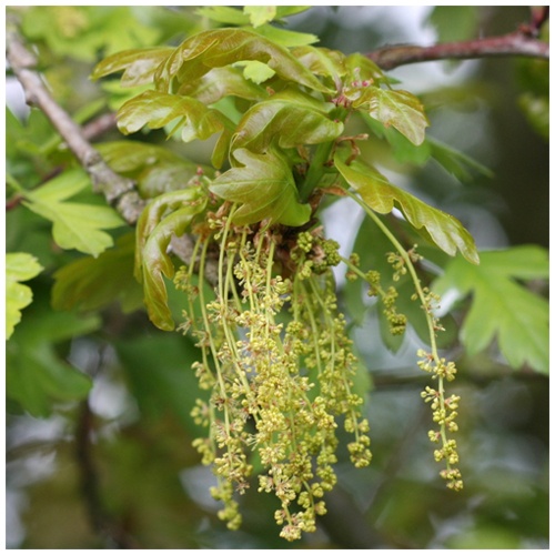 Зацветает дуб поздно, но и листья не спешит осенью сбрасывать. Некоторые дубы всю зиму стоят с сухими желтыми листьями.