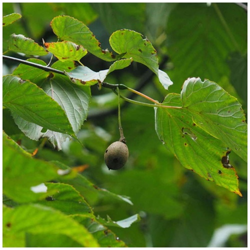 Листопадное дерево высотой до 25 м. Листья простые, пильчатые, сердцевидные, напоминающие листья липы.