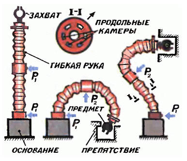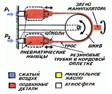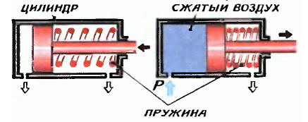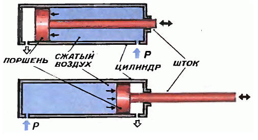 Мускулы из воздуха. Детская научная лаборатория Справочник / Детская научная лаборатория С некоторой натяжкой можно считать, что пневматический привод машин - один из древнейших. Ведь ветер давно уже служил человеку и в парусах кораблей, и в лопастях мельниц. При более строгом подходе пневмопривод, пожалуй, один из самых молодых, а поэтому и весьма перспективных. Он используется для силового зажима деталей, движения инструментов, шаговой и прерывистой подач по прямой и по окружности, применяется при резке, прессовании, сборке и множестве других технологических операций. Достаточно сказать, что примерно половина промышленных роботов имеет пневматический привод. Его принципиальная идея чрезвычайно проста. Компрессор сжимает воздух. Эта газовая "пружина" хранит накопленную потенциальную энергию до тех пор, пока воздух не подадут в пневматический двигатель. При расширении потенциальная энергия перейдет в кинетическую энергию выходного звена, например, поршня со штоком, который, в свою очередь, приведет в движение рабочий орган машины. Кроме простоты конструкции, пневматический привод обладает множеством достоинств. Прежде всего всегда под рукой рабочее тело, оно в прямом смысле слова берется "из воздуха". К тому же после использования туда же и выбрасывается, причем почти без всяких экологических неприятностей. А поскольку воздух гигиеничен по сравнению с другими рабочими телами, то пневмопривод широко используется в пищевой, электронной, фармацевтической промышленности, а также в точном приборостроении. Установки с пневматическим приводом при прочих равных условиях получаются дешевле, надежней, хорошо работают в жару и холод, не боятся высокой влажности и пыли, гарантируют полную пожаро-, электро- и взрывобезопасность. Срок службы пневмоприводов доходит до 20000 часов, рабочее усилие достигает нескольких тонн, а рабочие скорости в 5 раз выше, чем у гидропривода, причем и усилие, и скорость могут плавно регулироваться с помощью очень простых устройств. Во многих случаях пневмопривод удается соединить напрямую с рабочим органом машины, который, таким образом, приводится в действие без сложных механических передач. Другие важные преимущества по сравнению с электроприводом - возможность торможения до полной остановки под нагрузкой на неограниченное время и возможность обходиться без устройств, защищающих от перегрузки. Итак, достоинств множество, и пневмопривод, безусловно, оказался бы вне конкуренции, если бы у него не оказалось столь же многочисленных недостатков. Избавиться от них тяжело, так как эти недостатки - органическое продолжение достоинств. Обусловлены они тем, что рабочее тело-воздух, сжимаемый газ. Из-за этого свойства невозможно осуществить плавное перемещение рабочих органов машины при колебаниях нагрузки, сложно остановить инструмент в строго определенной точке, а пневматическую команду по трубопроводу можно передавать только со скоростью звука. Поэтому в некоторых случаях удобными оказываются гибридные системы: пневмогидравлические (если нужна высокая плавность хода или точность остановки) и электропневматические (если необходимо обеспечить быстродействие). Преимущество гидравлического привода - возможность использовать высокое давление рабочей жидкости (до 500 атмосфер). Оно позволяет созда