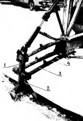 Подвеска задней опоры: 1 - стойка, 2 - пружина, 3 - рессора, 4 - подрессорники