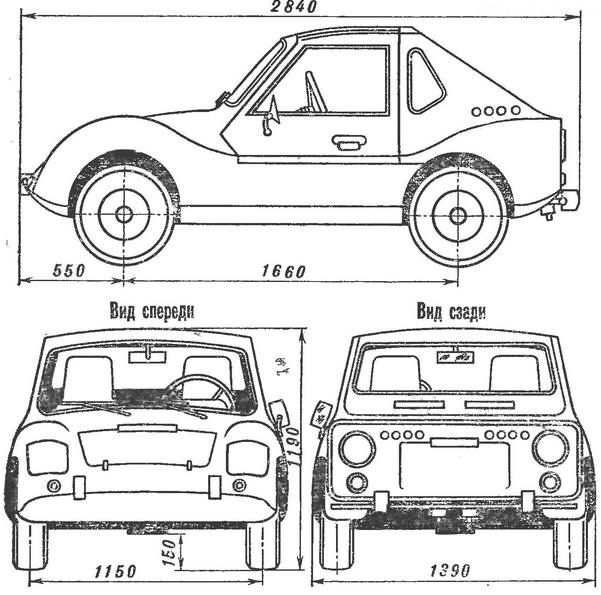Салон отделан современными материалами, изолирован от мотоотсека шумопоглощающей панелью с пенопластовым наполнителем. Кресла водителя и пассажира анатомические, выклеены из стеклопластика, выложены поролоном и обшиты кожзаменителем; машина снабжена ремнями безопасности. Автомобиль эксплуатируется с мая 1985 года. На спидометре уже много тысяч километров сахалинских дорог. Серьезных поломок в пути не было. Правда, должен отметить, что при полной загрузке мощности двигателя не хватает для преодоления часто встречающихся на наших дорогах крутых и затяжных подъемов. А это вынуждает включать первую передачу. Критически отношусь я также и к откидывающимся кверху дверям - не во всем они удобны. В остальном же машиной доволен.